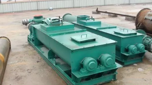 工作時,有葉輪給料機將料倉中的粉塵均勻的送到筒內(nèi),再有葉片把粉塵推入混料筒內(nèi),通過高速旋轉(zhuǎn)的棘軸把灰與適量的水進行強制混合。在攪拌過程中,筒壁與攪拌軸之間保持一定的間隙將物料推向出料,具有結(jié)構(gòu)緊湊、技術(shù)先進、穩(wěn)定可靠易維修等特點。